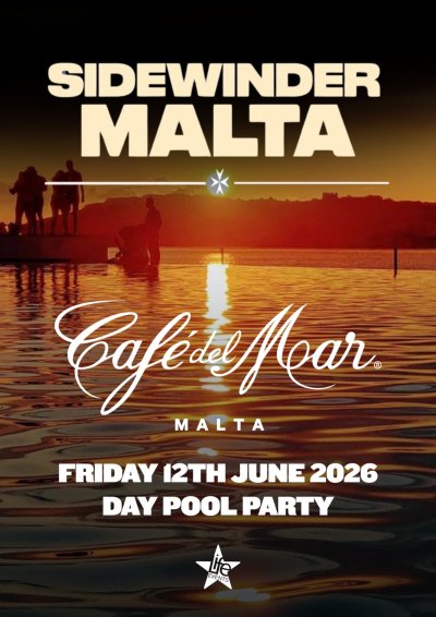 Get ready for a full day of poolside music as the Sidewinder UK Garage & R&B Pool Party returns to Café del Mar Malta on Friday, 12 June 2026, running from 12 PM till late.