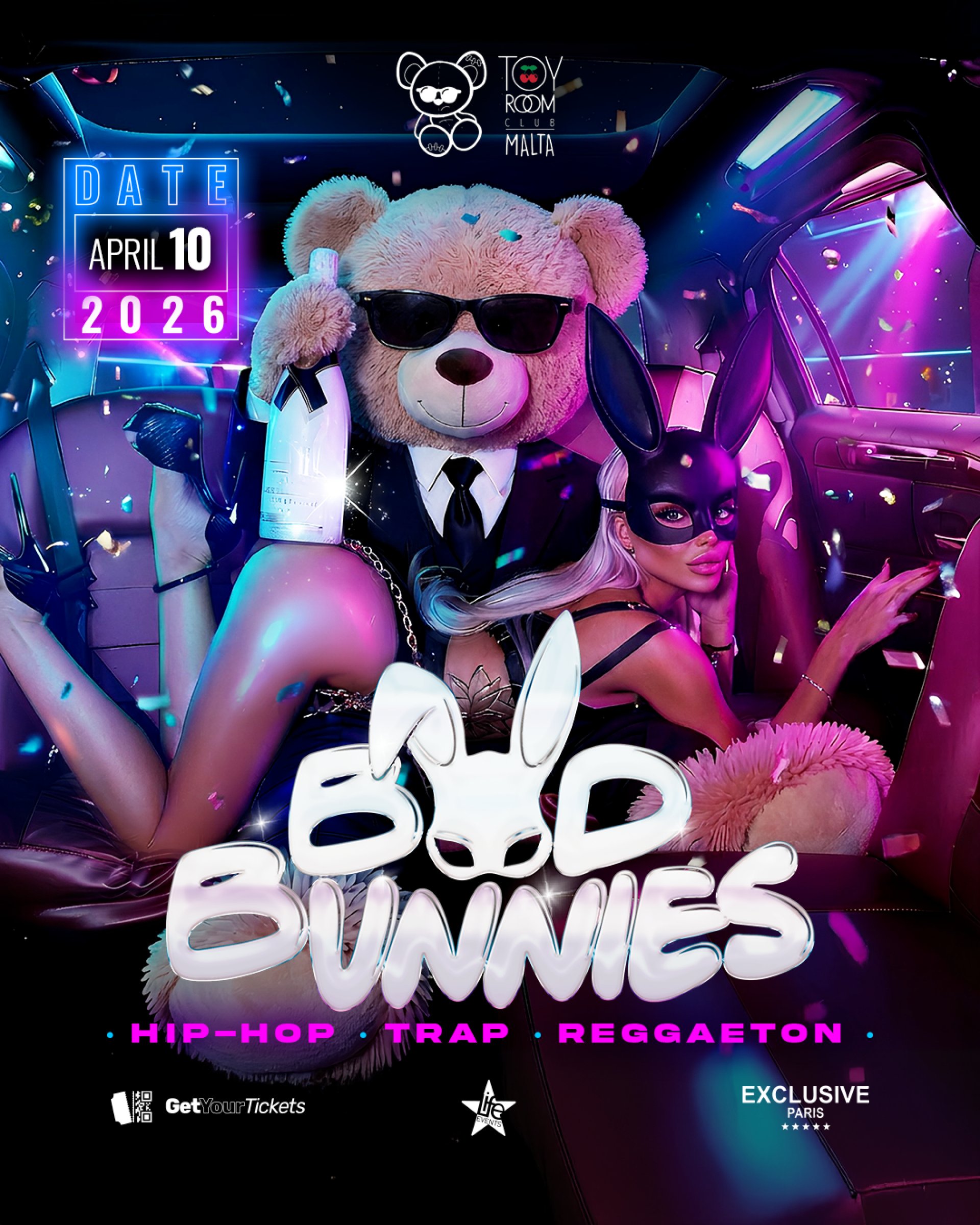 Toy Room becomes a wild playground for BAD BUNNIES, the reggaeton, hip hop, and trap party where the beat hits harder, the crowd moves hotter, and the energy never slows down.