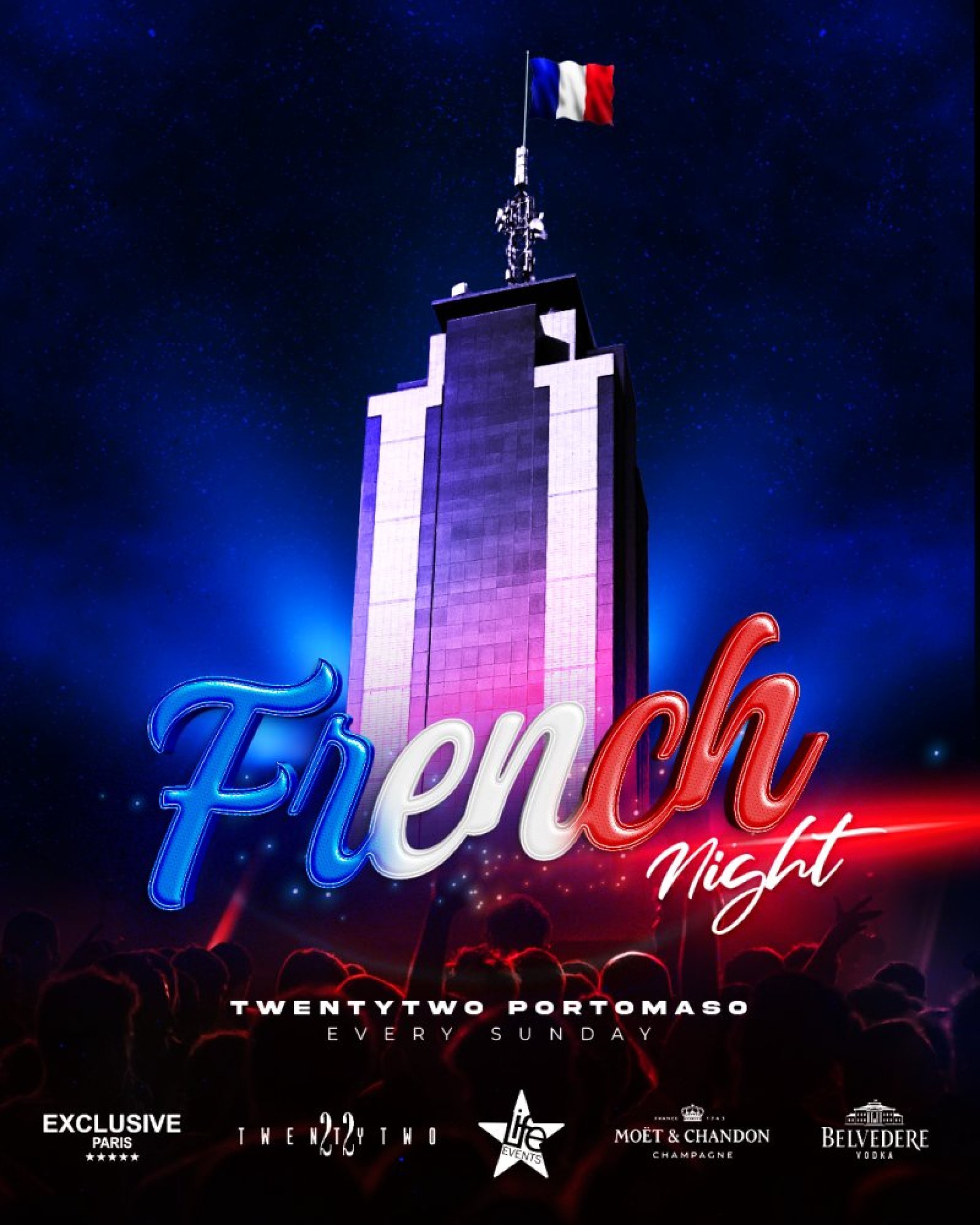 Experience the ultimate V.I.P. Party: French Night at Twentytwo 🇫🇷 Located in the Portomaso Tower - Malta's tallest skyscraper. 🏙️✨Enjoy the French ambiance and immerse yourself in the latest French music, all while taking in the breathtaking 360-degree view from the top floor. 🎶